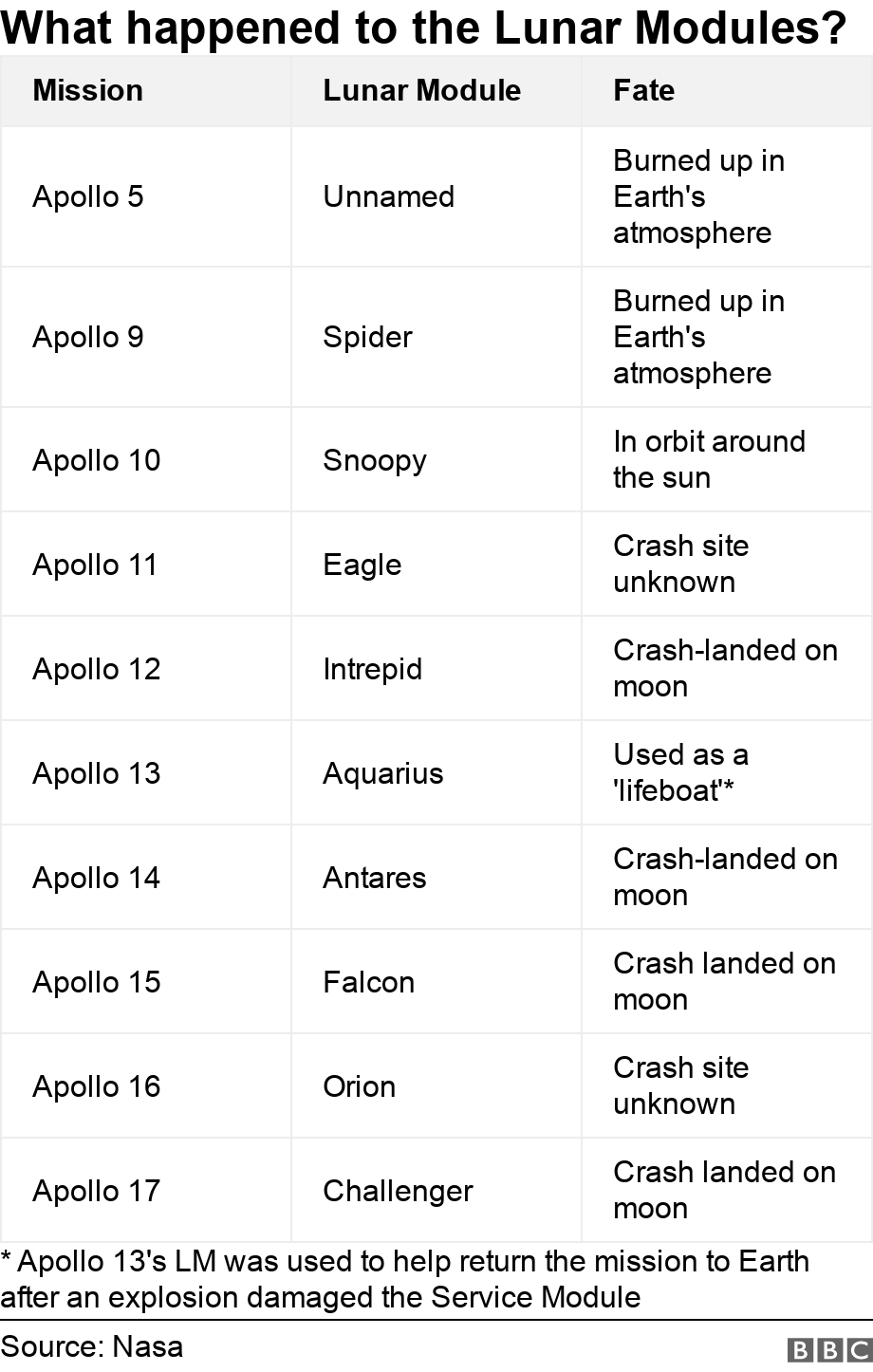 Most of the other modules - once they had safely returned astronauts back to the Command Module in lunar orbit - were dispatched to crash-land back on the surface.